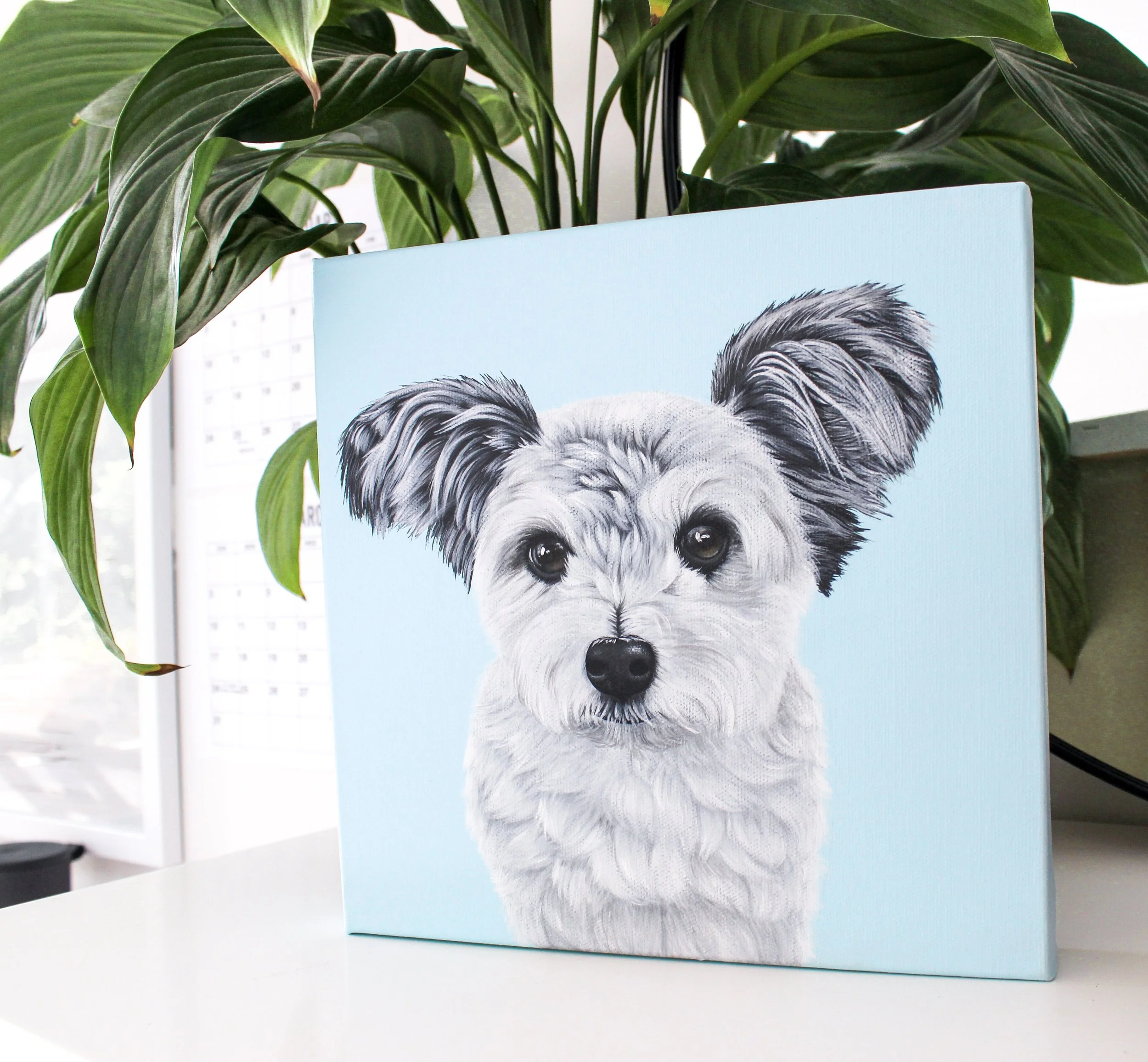 Starting by doing commissions for family and friends during my studies, I utilise acrylic paints on canvas and up to 12 hours to capture the personality, essence and charm of each individual pet.